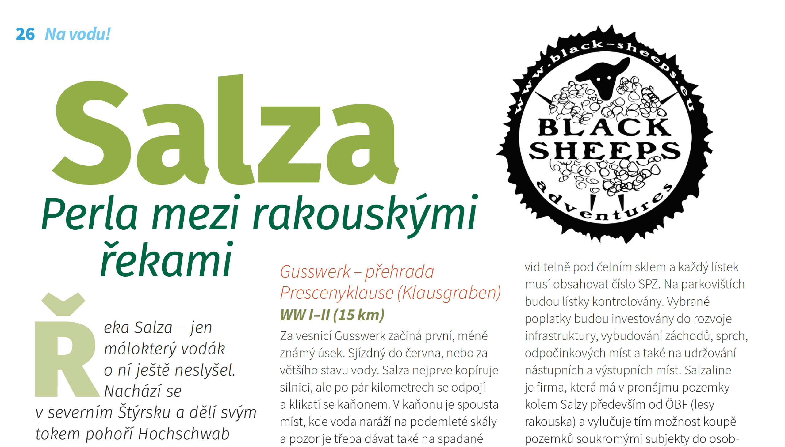 Řeka Salza – jen málokterý vodák o ní ještě neslyšel. Nachází se v severním Štýrsku a dělí svým tokem pohoří Hochschwab a Göstlingské alpy. Pramení nedaleko poutního místa Mariazell pod horou Ulreichsberg ve výšce asi 1800 m n. m. Dlouhá je 80 km a ústí do řeky Enns. Průzračnou vodu jako je zde, dnes už najdete málokde.